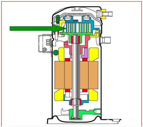 渦旋壓縮機是一種容積式壓縮的壓縮機,壓縮部件由動渦旋盤和靜渦旋組成。包括使通過壓縮機殼體的氣體的分路流動方式以減少夾帶的油的許多結構特征。