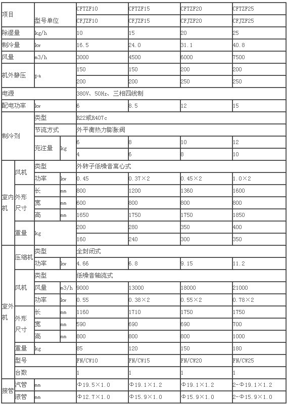 風冷降溫型、降溫除濕機技術指標<1>